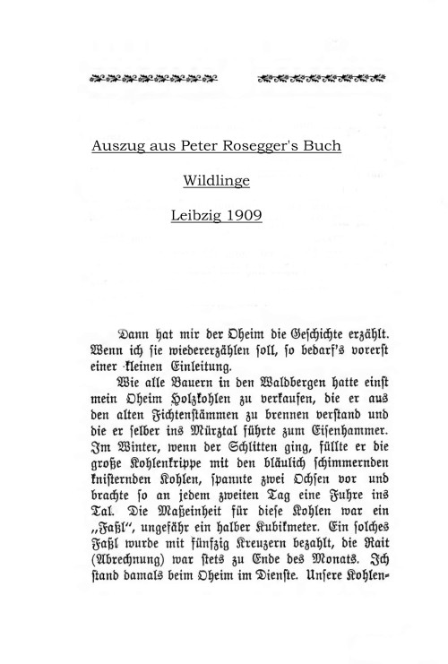Auszug aus Peter Rosegger's Buch "Wildlinge"